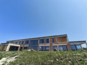 Az 1115 m²-es, téglából épült villa szerkezetkész állapotban várja befejezését. Az alapok már elkészültek: korszerű tetőszigetelés, antracit színű, háromrétegű üvegfalas nyílászárók, modern víz- és villamos hálózat (3×100 Amper kapacitással), valamint előkészített medence és wellnessrészleg. Ez azt jelenti, hogy az ingatlan azonnal továbbépíthető, a végső belső kialakítás pedig teljes mértékben az új tulajdonos ízlésére szabható.